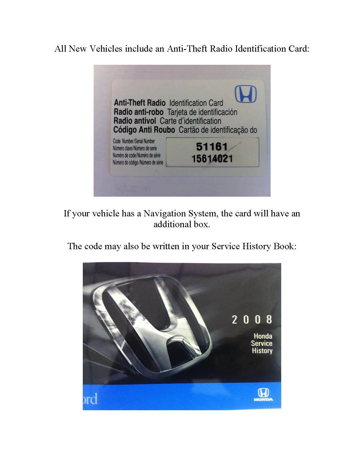 Honda Radio Code Retrieval Radio Code Information