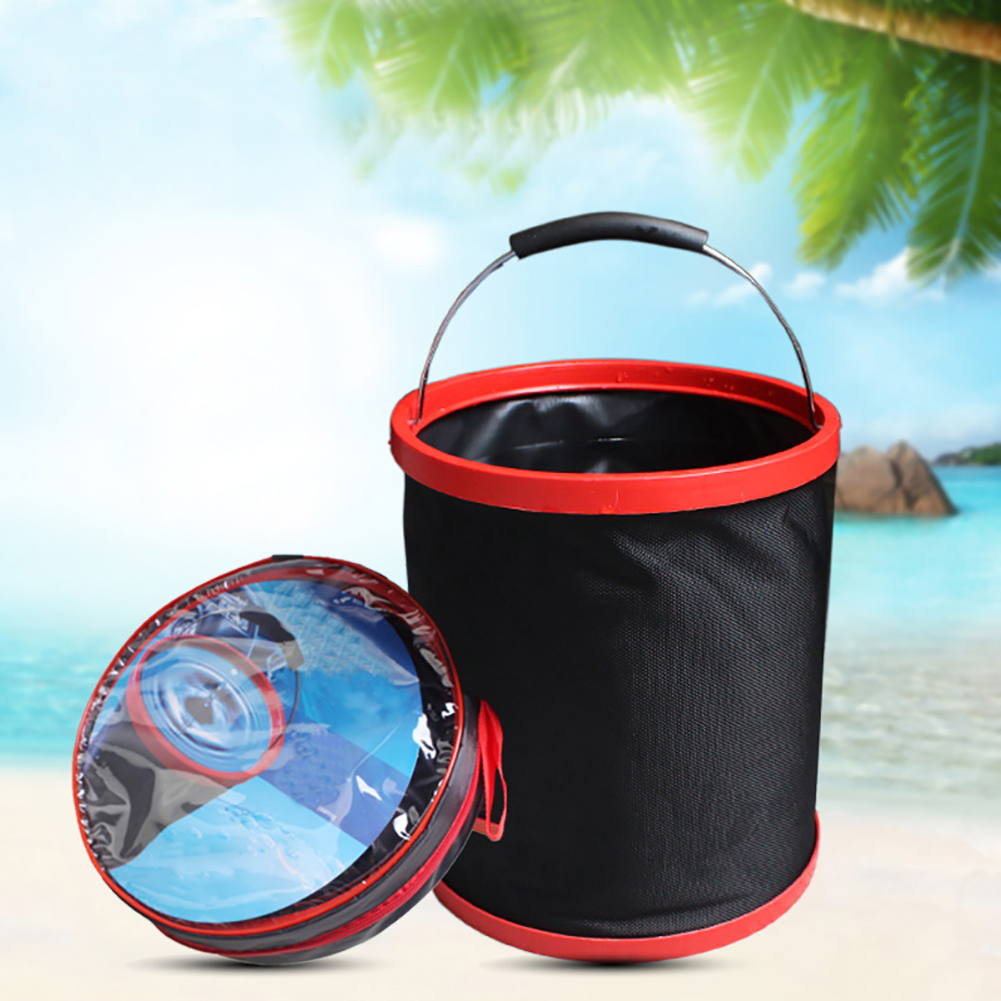 12l Foldable Bucket 2000 D Oxford Cloth Fishing Bucket Camping Car Wash Bucket With Round Bag