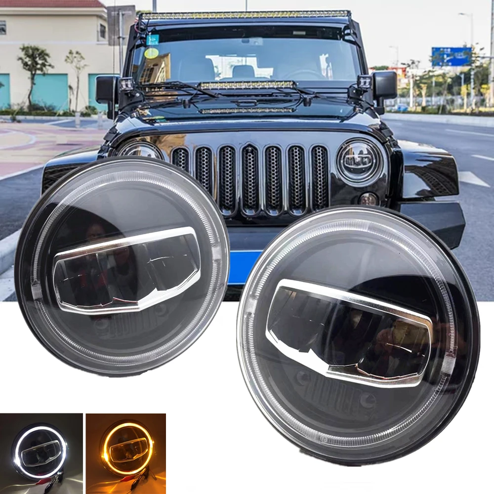Dot 7 Led Headlights For Jeep Wrangler Jk 2007 2017 Rubicon Jku Sahara Sport Unlimited Hi Low Beam Drl 4 Led Fog Lights With Halo Ring Amber