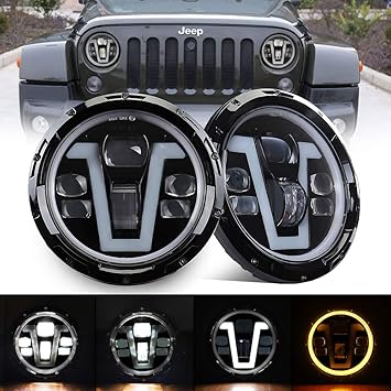 Seuya Jeep Wrangler Headlights Led Halo 7 Inch Headlights With Turn Signal Lights V Type Drl Hi Lo Beam For Jeep Wrangler Jk Jku Cj Lj Tj Hummer H1 H2