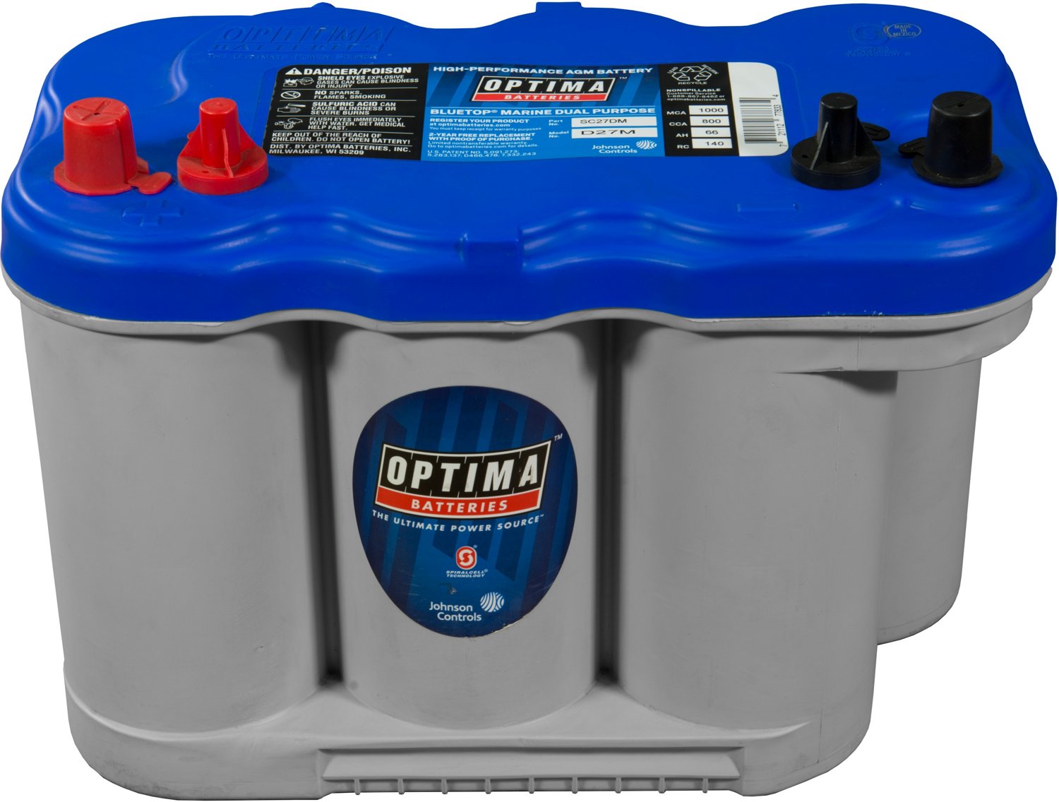 Optima D27m Bluetop Group 27 Marine Battery 8042 140